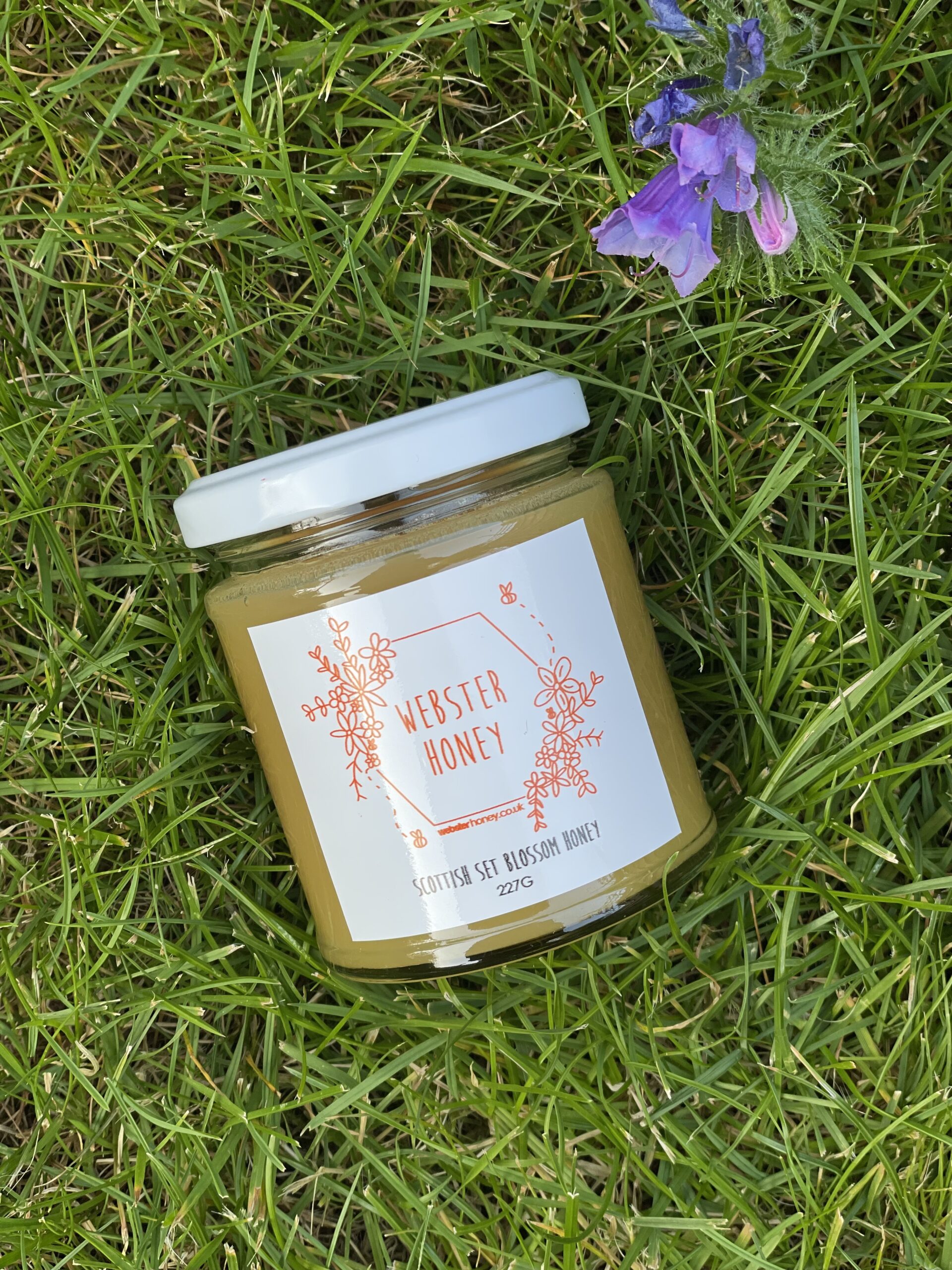 Minimally filtered and unpasteurised blossom honey from urban & rural apiaries in a set style.
